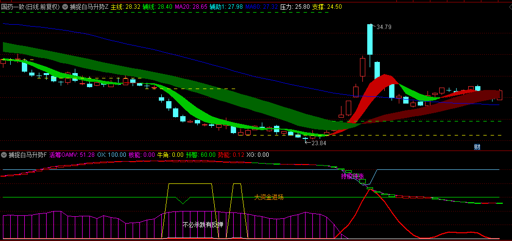 【捕捉白马升势】主图/副图/选股指标,专为追踪趋势白马股而设计,高胜率捕获趋势白马主升浪!