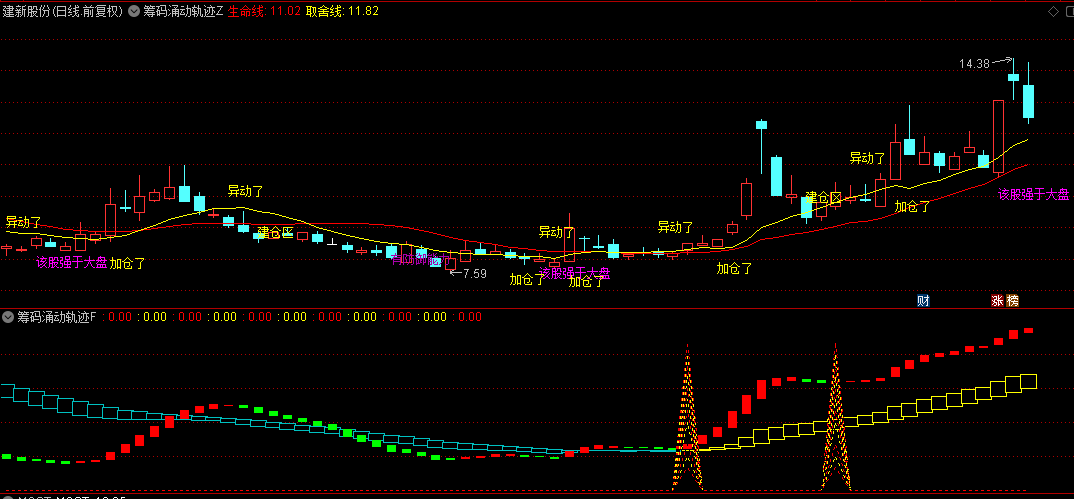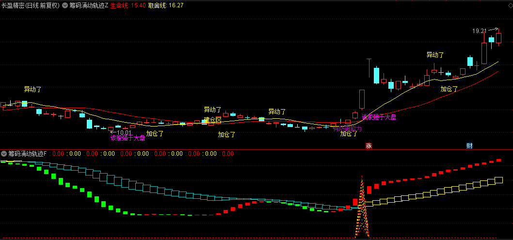 在此,我们为您呈上一款名为“筹码涌动轨迹”的指标,它巧妙融合了主图分析、副图辅助及智能选股三大功能。无未来函数。