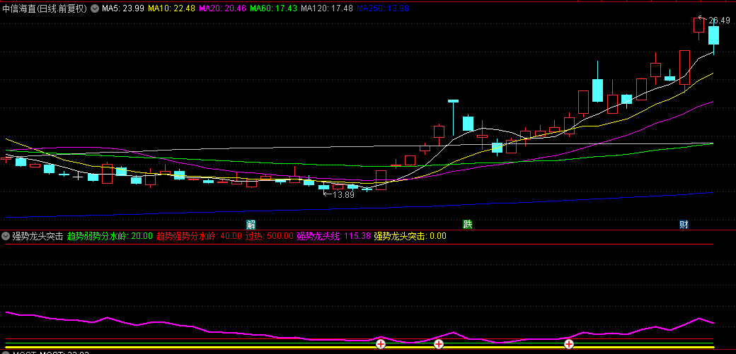 强势龙头系列指标之强势龙头突击幅图指标,解密交易中的利润密码,作为一个短线炒手,我们可以利用该公式的信号进行快速交易,抓住股价的短期波动。
