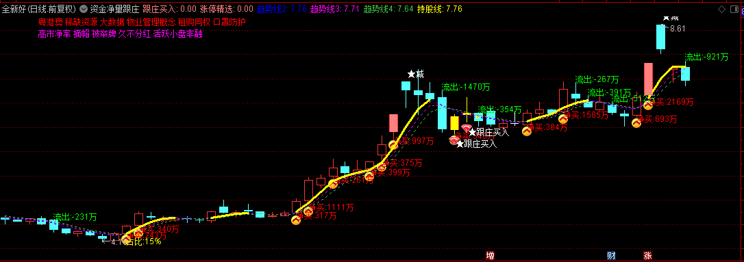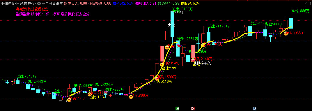 【资金净量跟庄】主图/选股指标,K线显示净流资金,及时根据资金占比来跟庄买入!