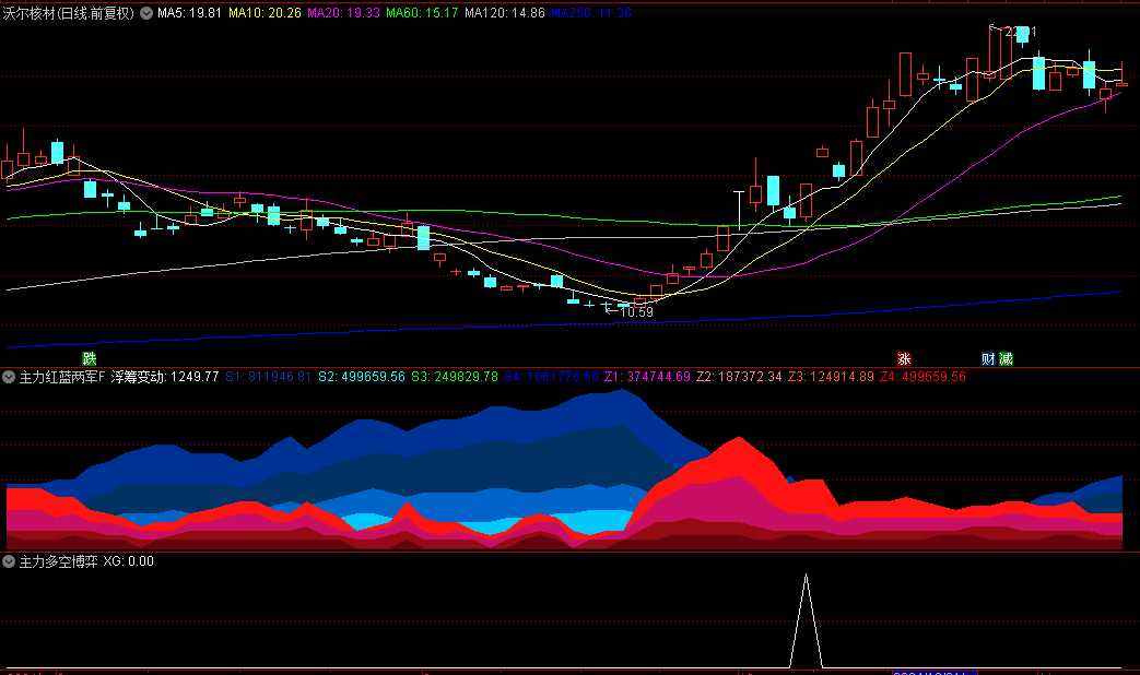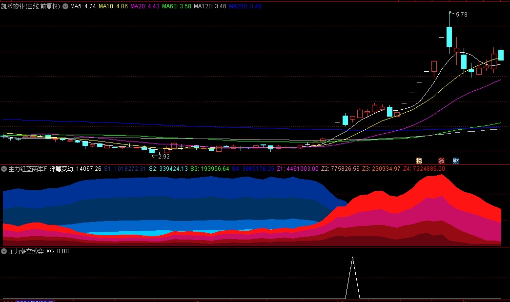 主力红蓝两军对垒共振抓牛副图和主力多空博弈选股指标,金叉抓波段牛股主升浪。