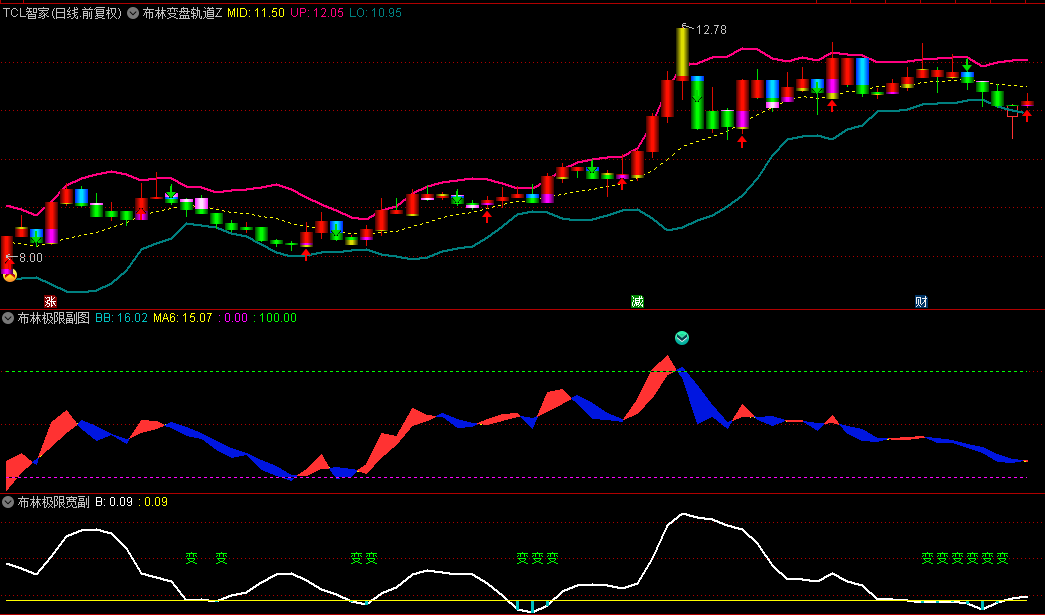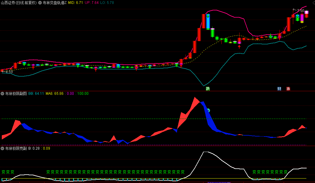 事实上,布林线、布林极限、布林极限宽是一个完整的指标组合,实战操作时,三者互相支援,被视为“一套”指标。