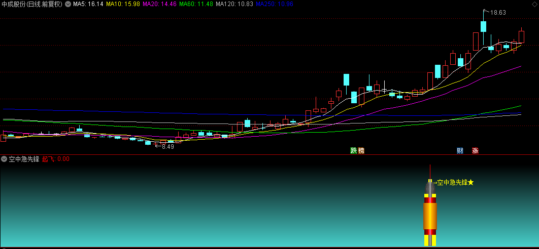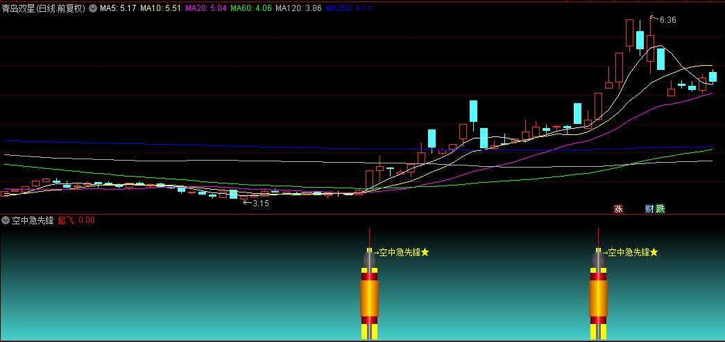空中急先锋信号:当出现"急先锋”信号时,说明个股进入突破行情,是买入的好时机。