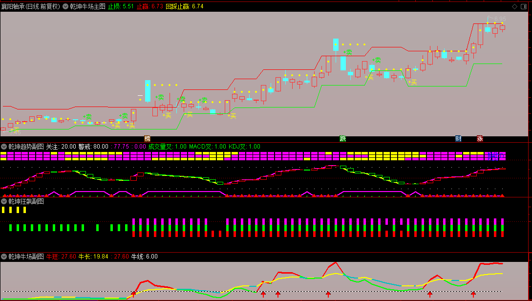 收费群里的【乾坤牛场】套装指标,乾坤牛场主图+乾坤趋势副图+乾坤狂飙副图+乾坤牛场副图,共振抓牛!