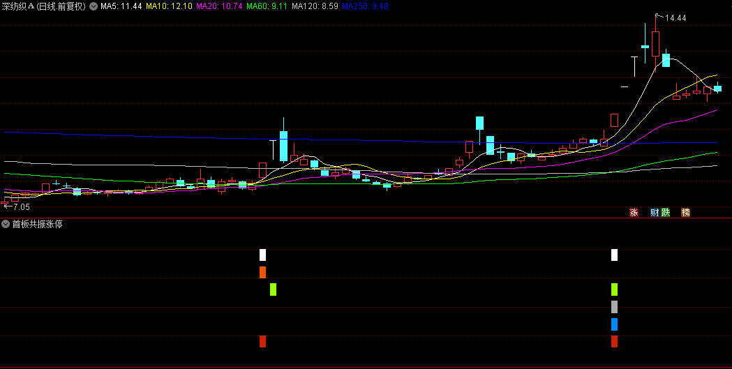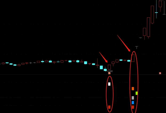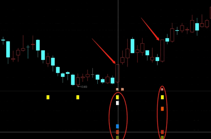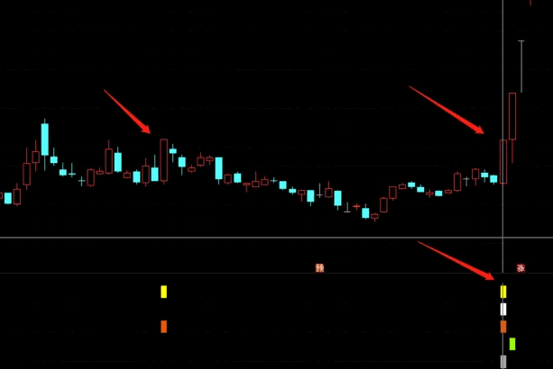 我掏出手机,给他看了个副图指标——首板共振涨停。