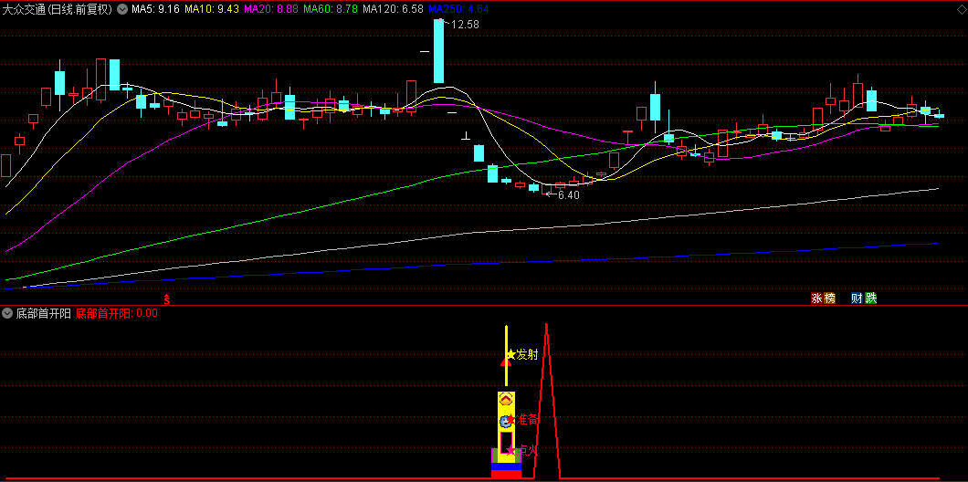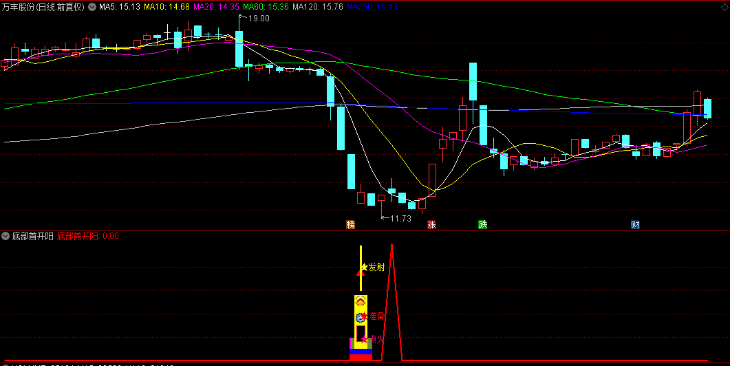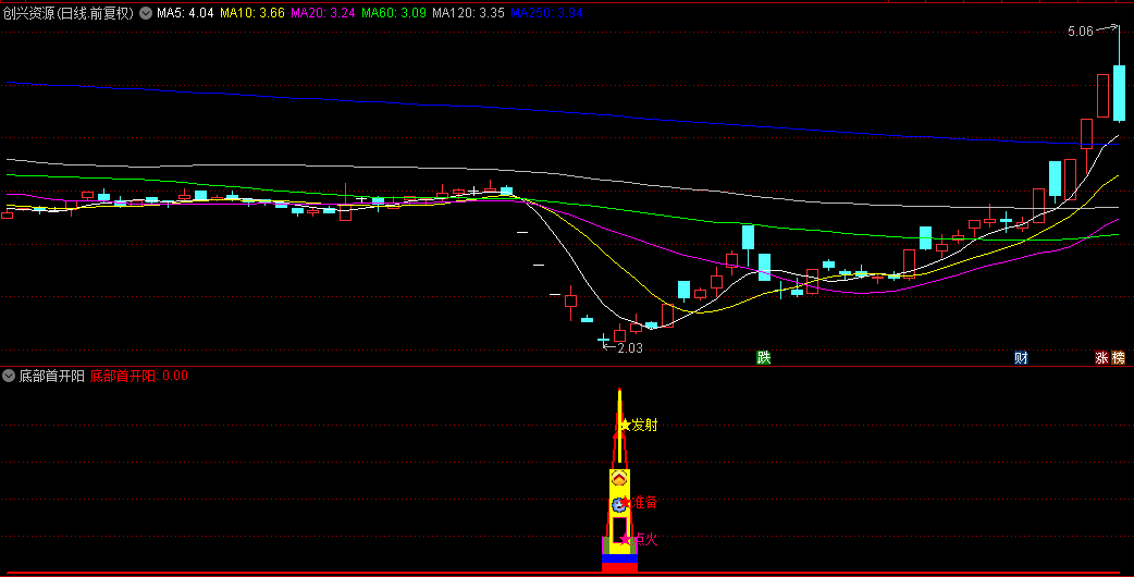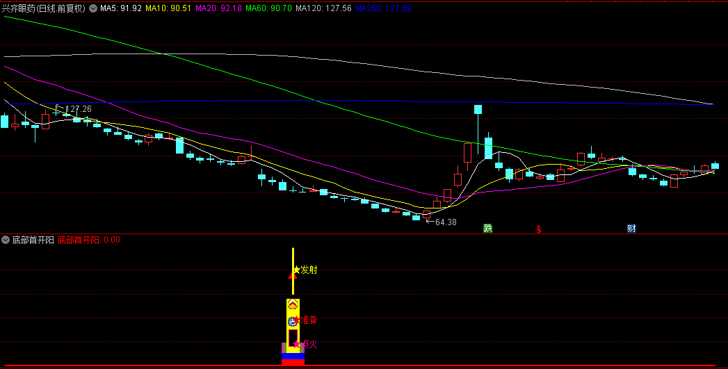 【底部首开阳】指标,属于寻底后多阴首开阳的一种,也叫底部首阳。