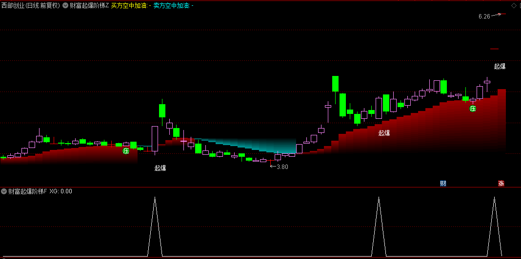 主图中有起爆信号,这个信号如果出现在红色阶梯的区间,信号更加确认,做出的选股指标,就是选出起爆字样位置的信号;