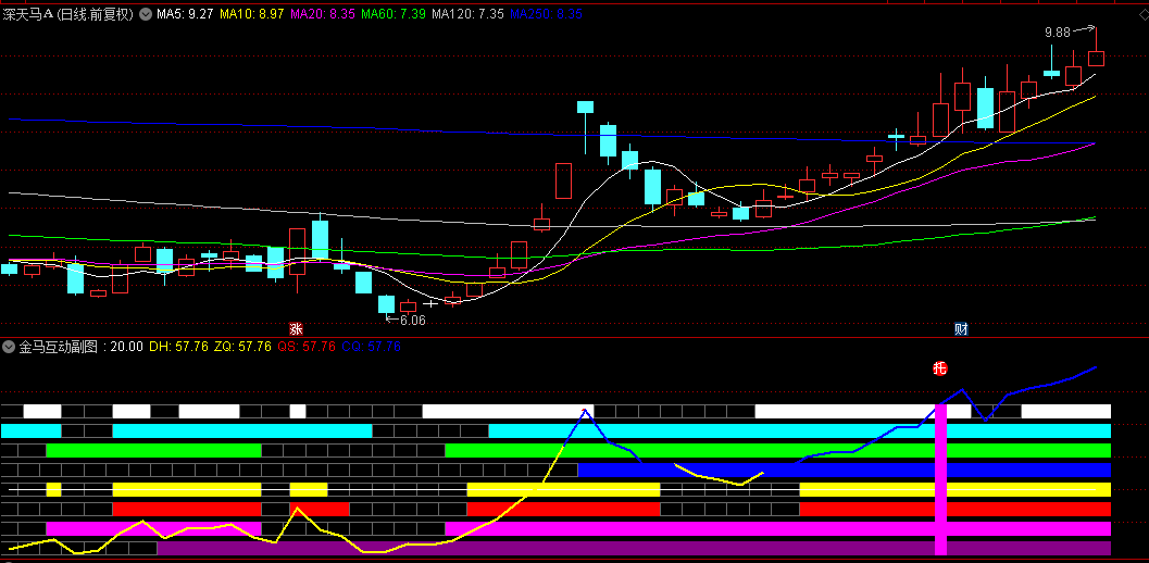 金马互动的周期共振位置,就是MACD和KDJ的周线日线 月线 超短线 都是多头的位置,埋伏它,鉴于近期复盘 发现机构拉一个板就有出货的,所以埋伏机构,机构拉一个板出货,也跟着出货。如果金马互动正常是预设拉最少5个点,腿脚慢的,涨停附近追进去,机构有可能马上就出货,或者马上洗盘,结果机构一洗,洗盘一个礼拜,甚至洗盘好几个礼拜,容易把心急的,不懂买卖点的,看不懂顶背离底背离的,5分钟有严重的顶背离,就容易遇到机构出货的,机构杀个回马枪,整个过峰保顶,一个回马枪就容易把小白洗割肉了。所以,金马互动预设成0涨幅,说明底部不是顶底互换,就是重要支撑位,或者机构的筹码峰上沿,机构不可能让你 捡到更便宜的筹码,只会突然袭击拉大阳,让你低卖,高位追买。