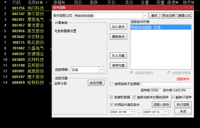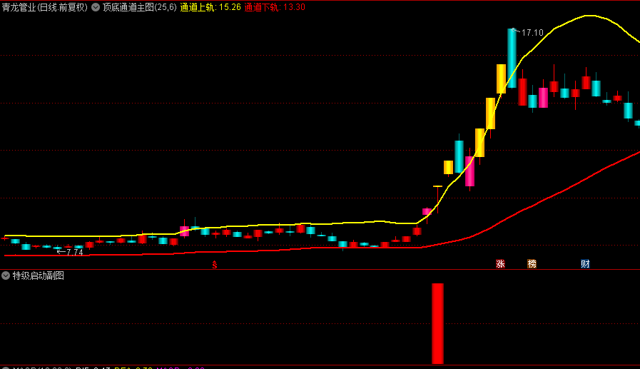 从某价值几千元的套装指标里面筛选出来的选股指标,特级启动属于特殊而珍贵的底部启动信号。