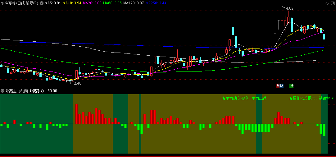 非常实用的副图指标,利用乖离来监测主力动向的指标,有文字策略提示。