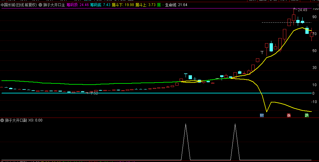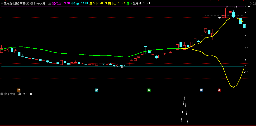 “狮子大开口”主图指标,包含选股指标。副图选股一体,不含未来函数。