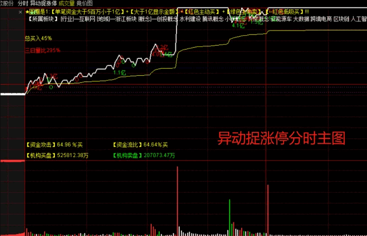 通达信【异动捉涨停】分时主图指标,盘中异动,红色低吸买抓涨停!