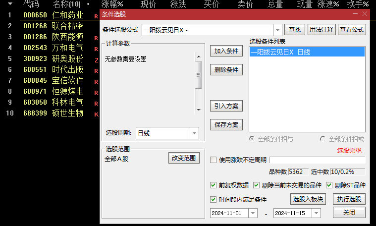 通达信优品【一阳拨云见日】副图+选股指标,右侧趋势交易,牛市策略,胜率86.62%!