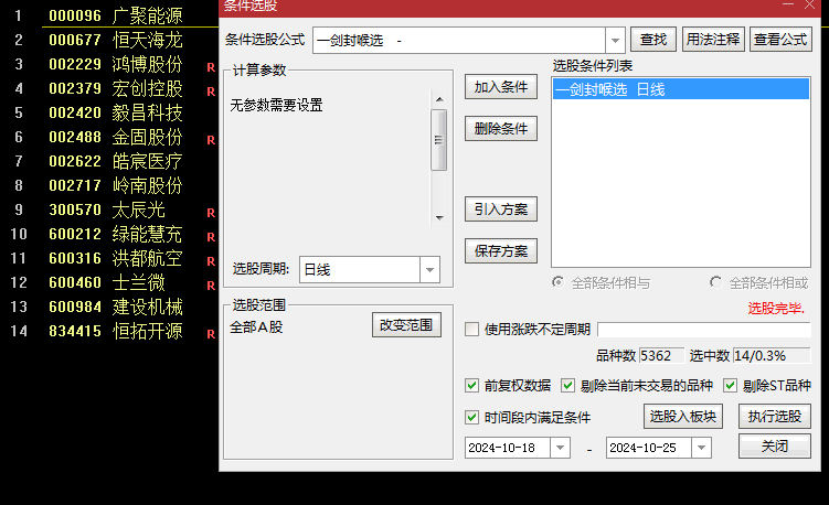 目标明确的【一剑封喉】副图+选股指标,就在刚刚!选股干脆利索居然只出来一只个股!