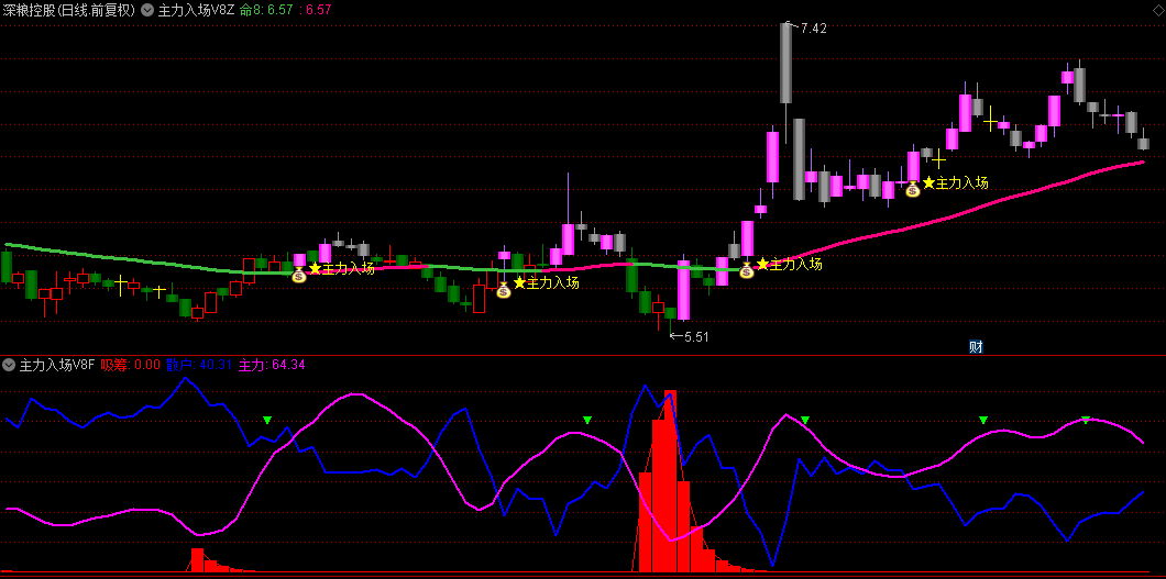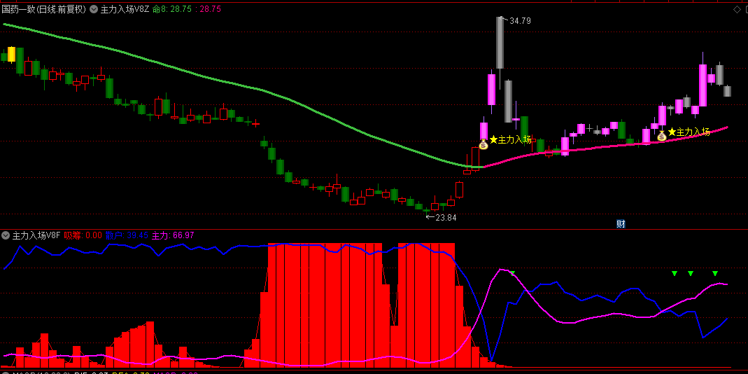 通达信【主力入场V8】主图+副图+选股套装指标/抓十倍股/识别市场趋势/把握最佳交易时机