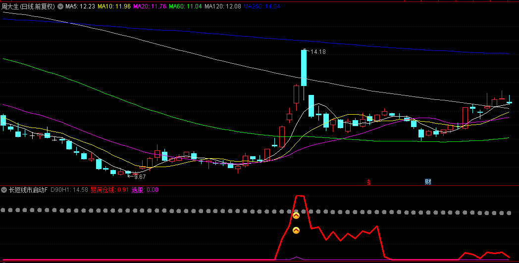 关注长线启动点和D90H1的走势,判断股票的长期趋势。