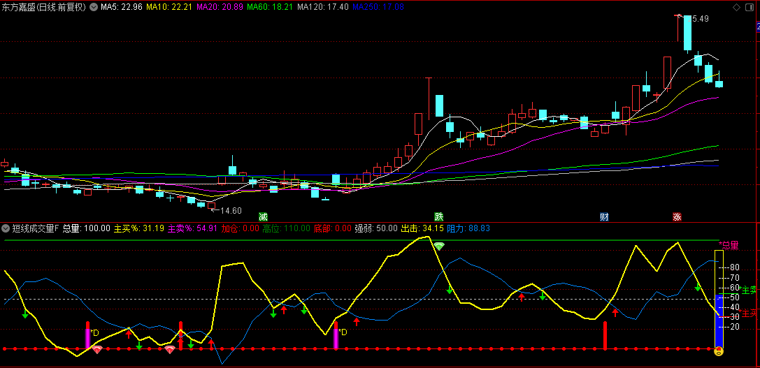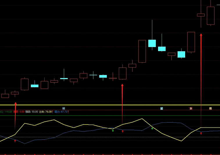 当出现红色箭头,说明量能配合不错,进入强势区域,出现绿色就反之。