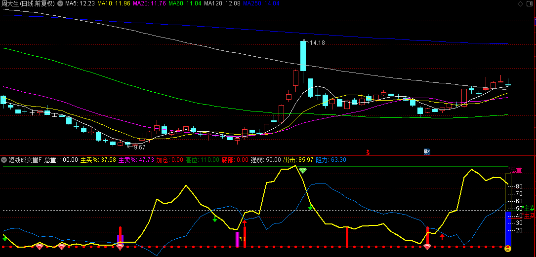 分享一个根据成交量判断强弱趋势的【短线成交量】副图指标,出现红色箭头,说明量能配合不错!