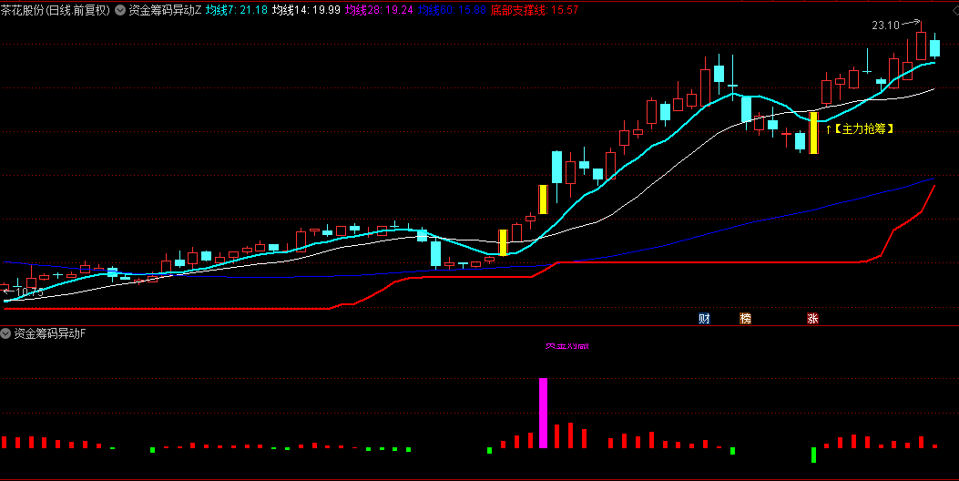 通达信【资金筹码异动】套装指标公式,主图+副图,没有未来函数。