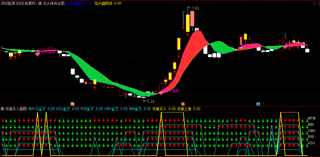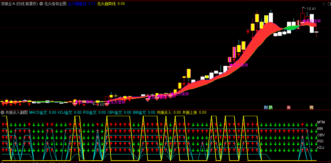 通达信【龙头信仰】主图+副图套装指标,共振逻辑,确定性较高的买入节点!