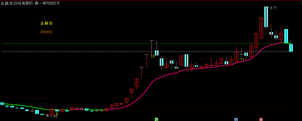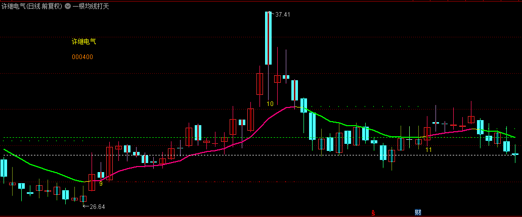 行情突破或下坡均线时 ,则变色提示,当前均线价格、现价随横线浮动变化。