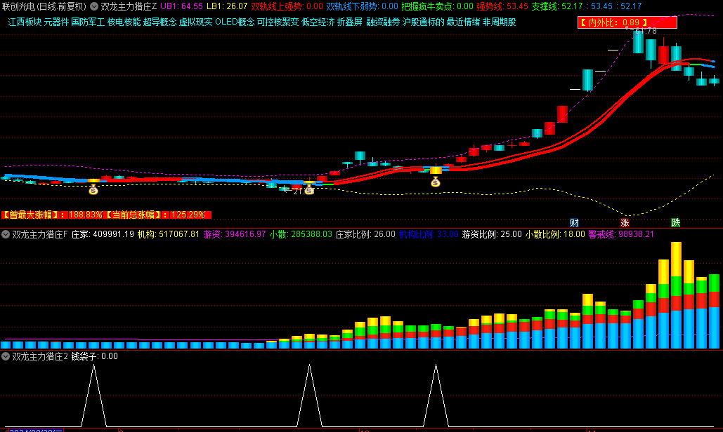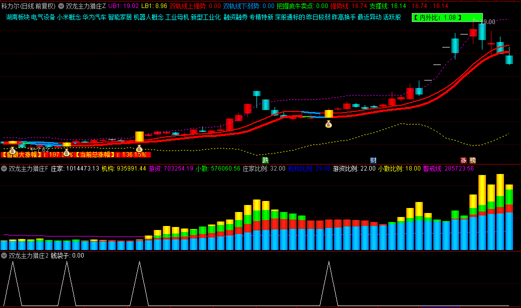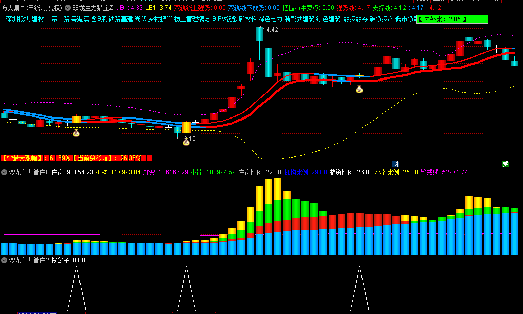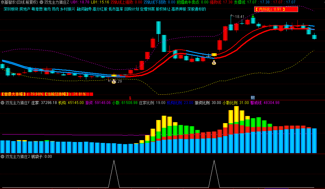 【双龙主力猎庄罗盘】主图/副图/选股指标,双龙罗盘主图+主力进出副图,双龙钱袋子信号准!
