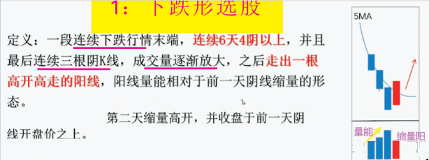 第二天缩量高开,并收盘于前一天阴线开盘价之上。