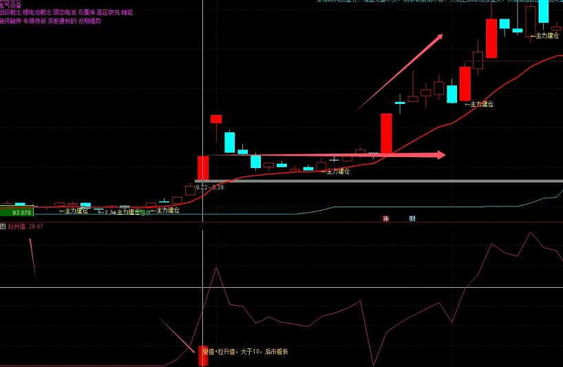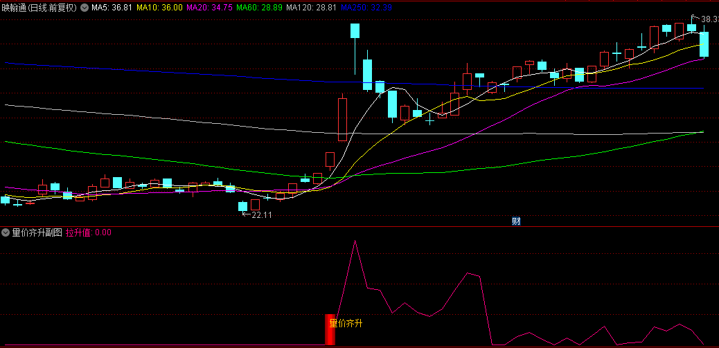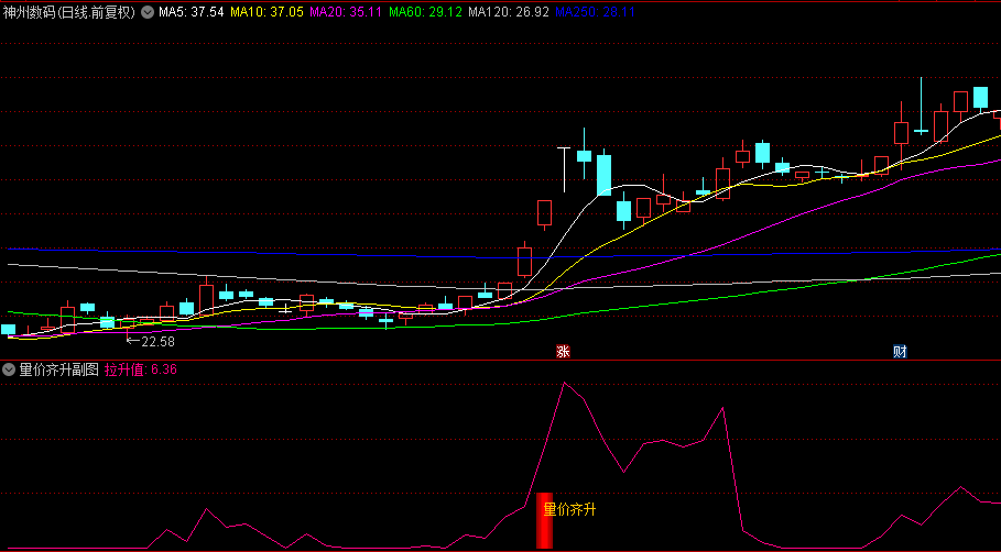 JH28【量价齐升追大牛】副图指标,量值+拉升值,大于10,后市看涨!