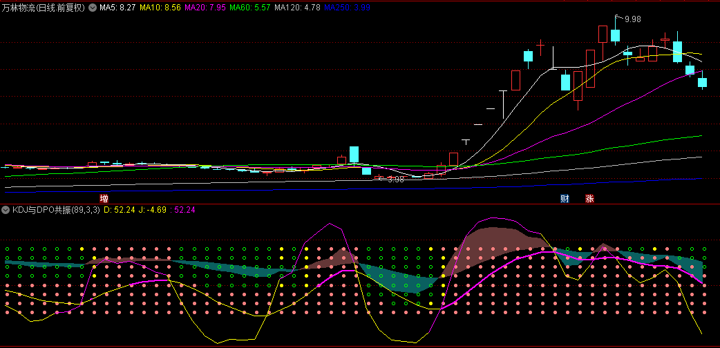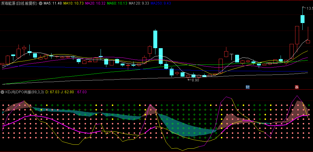 三大指标【kdj+dpo+均线】共震,可以形成有效的趋势判断。