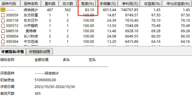 测试时段:自2023年10月30日至2024年10月30日,整整一年的市场风云变幻,尽在其中。