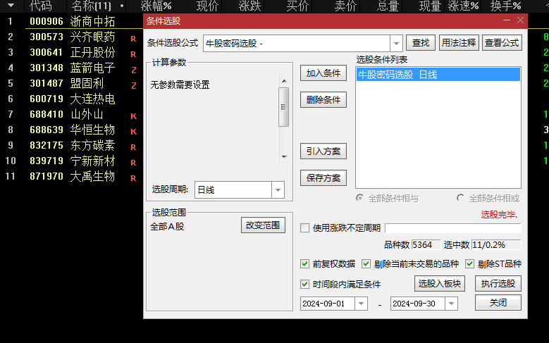 周末为大家发一个超牛的【牛股密码】副图+选股指标,来自于实战总结,测试胜率85.55%!