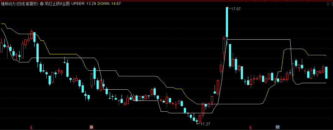 该跟踪止损点的优点在于当市场不断创出新高时止损点能相应迅速上移。“吊灯”这个名字似乎起的蛮合适的,它能帮我们理解这种有效的止损策略的设计方法