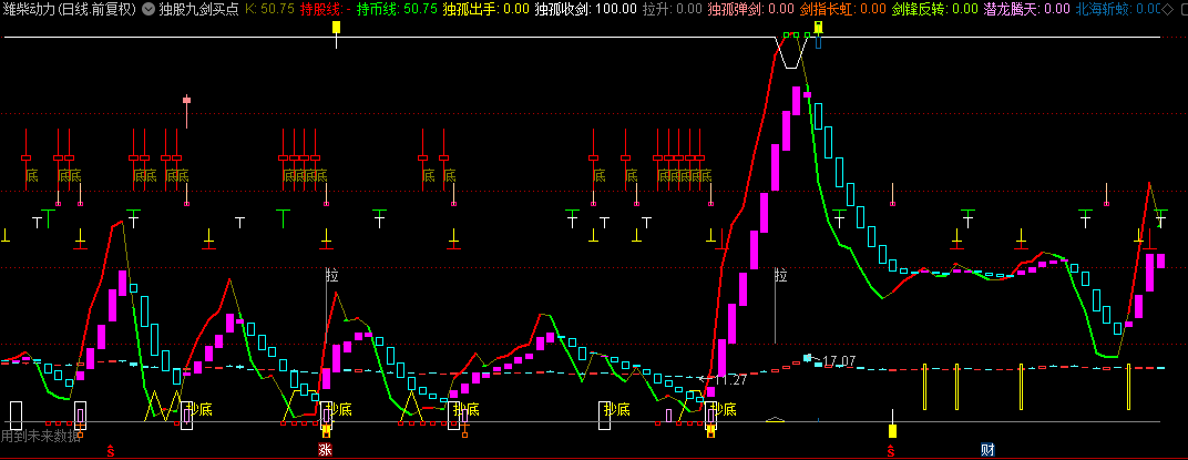 3,当独孤弹剑出现时,会有一至三天反弹;拉升信号是强势的表现;