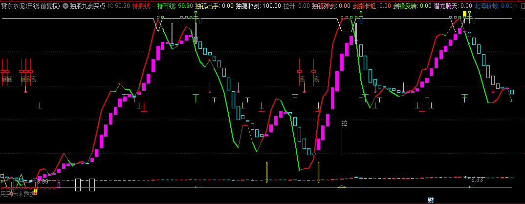 通达信【独股九剑买点】主图指标,九大指标浓缩在一个指标里,称为独孤九剑!