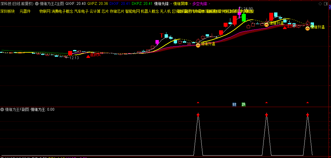 另外,《情绪为王》是一种适用范围广泛,以“有波段起伏”就是好股票为指导思想的指标,所以,大市环境好的时候,选中标的相对较多,介意的就请绕道,勿拍砖头!