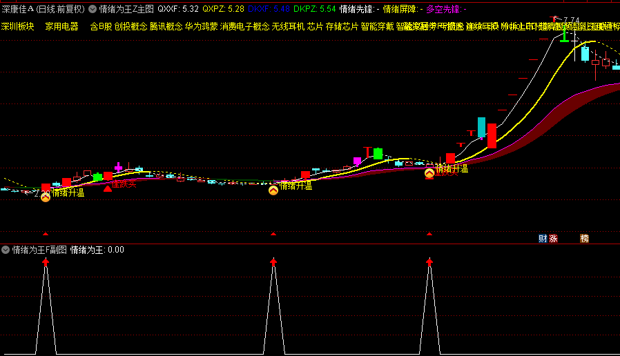 2,情绪升温:用于上升趋势形成后,抓波段起涨点;
