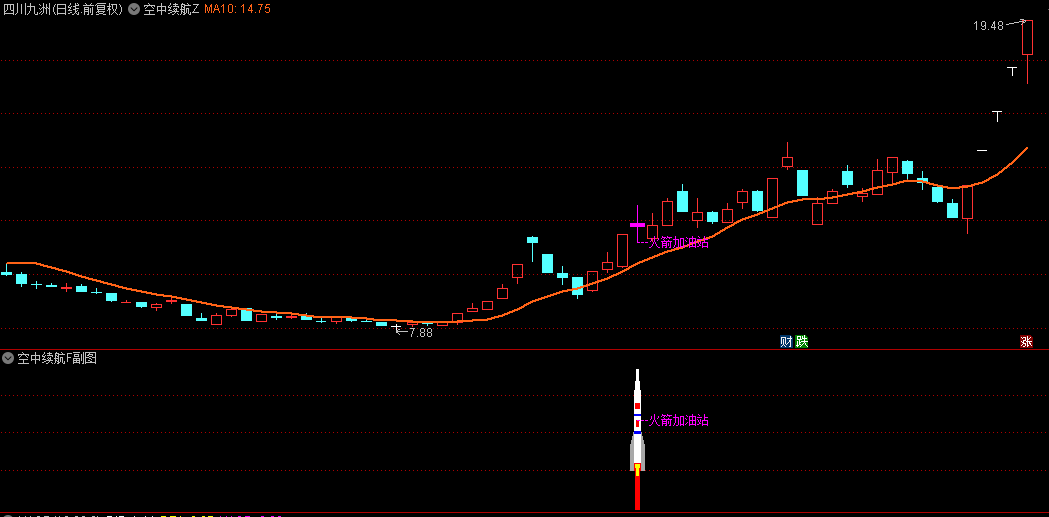 空中续航指标就是选取的主升浪启动初期形成空中加油形态的个股,后期有更高的拉升空间。指标条件严格,信号较少,最近一年70多只信号,行情走好,进入主升浪的票多的时候,信号会适当增加。也很好的规避了行情整体不好的风险。