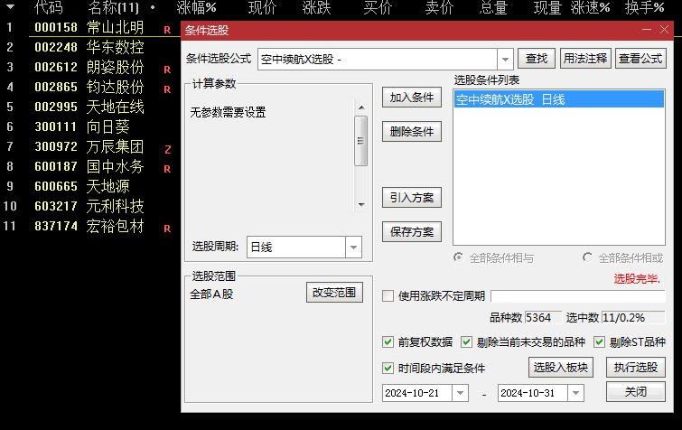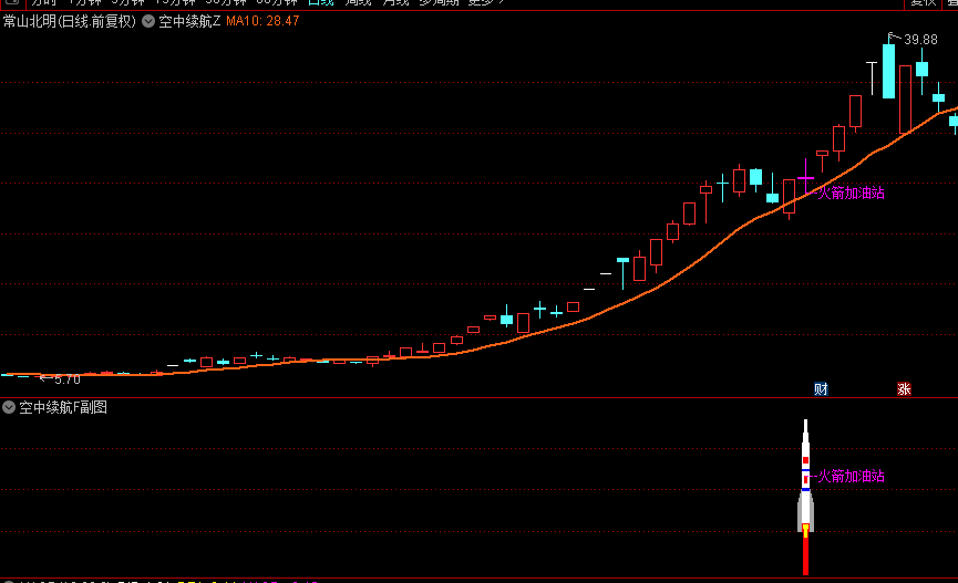 一、指标设计理念:空中加油在股票市场中,通常指主力在拉升一只股票的过程中,进行的暂时性的休整。这种休整的目的是为了清除浮游筹码,以便后期再次大幅上涨。这个过程就像飞机在空中加油一样,为后续的飞行(股价上涨)提供动力。