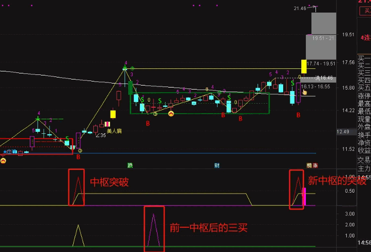最近超火的【缠论中枢】修改版指标,跳空中枢和突破中枢的关注位置,判断后期走势强弱!