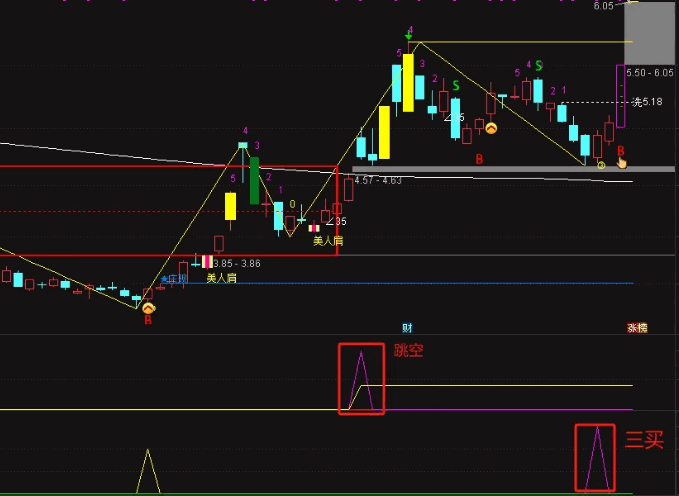 我修改了穿越中枢顶和跳空中枢顶两个指标,更喜欢早盘竞价的时候选跳空过中枢顶的票,来观察,毕竟跳空更强势的。