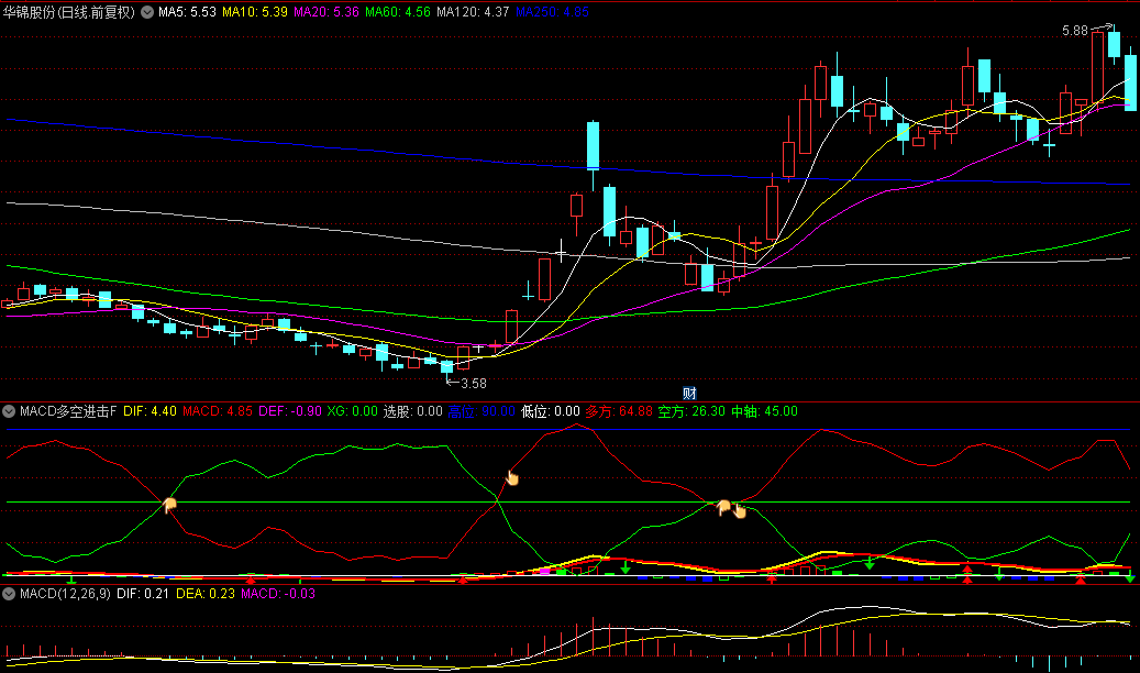 原创作品【MACD多空进击】副图/选股指标,出现向上金手指,是多头进击信号!