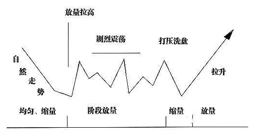 1、突然拉高或打压造成股价阶段放量,剧烈震荡进行吸筹,快速打压洗盘、V形反转、拉升