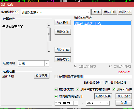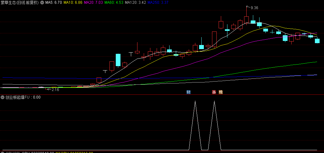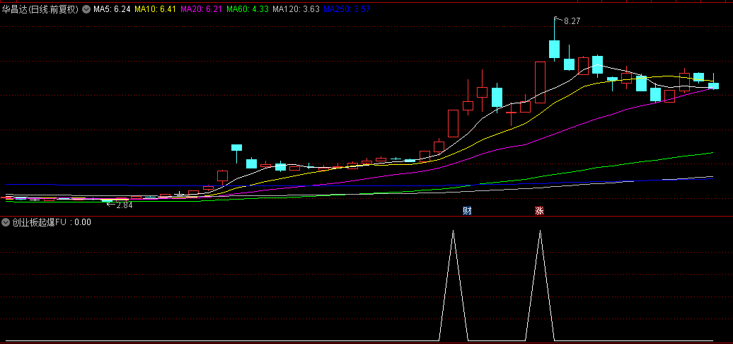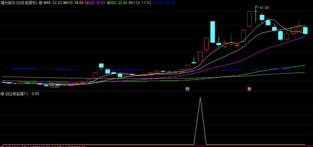 花几百块钱淘来的【创业板起爆】副图及选股预警指标,效果还不错,分享给大家。