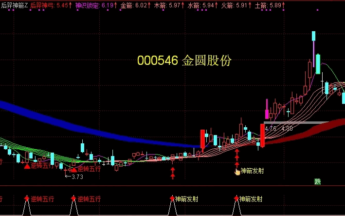 一,《后羿神箭》 是一种波段与趋势兼顾的指标,短线波段看“神识锁定”线,趋势看“金、木、水、火、土”五行箭线,朋友们自行发挥空间大,期待朋友们从中探索出更好更高效的战法。其内含主图指标“后羿神箭Z”,副图“后羿神箭F”以及选股公式“后羿射日”。
