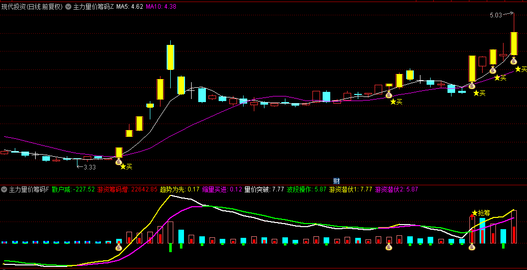通达信趋势类指标。量价指标可以找到主力、游资等机构共振进场的信号。