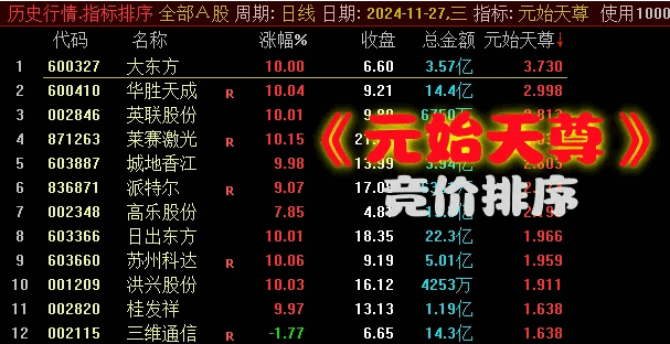 价值530的【元始天尊】排序副图指标,首板+晋级+接力,所有妖股都可以被抓到,仅限电脑使用!