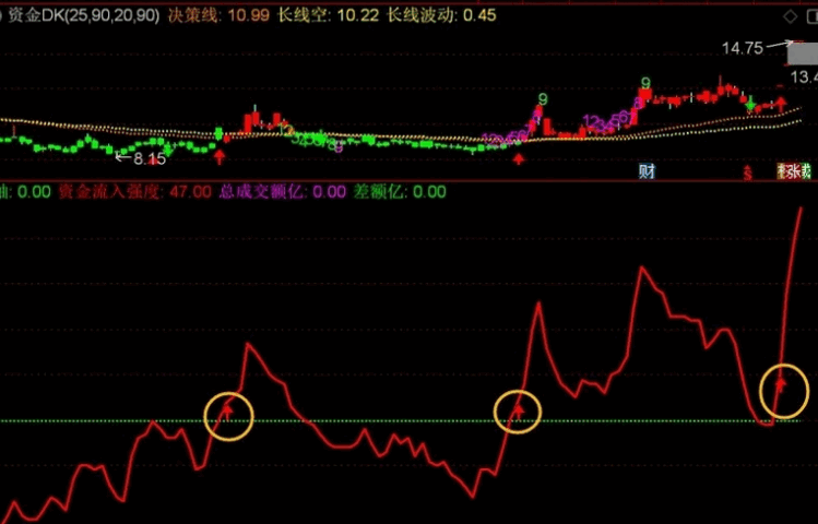 使用方法超简单:当资金线强势突破,一路走强后回踩中枢,只要不破,后续就值得继续观望,