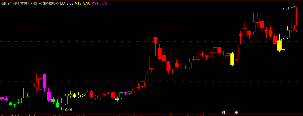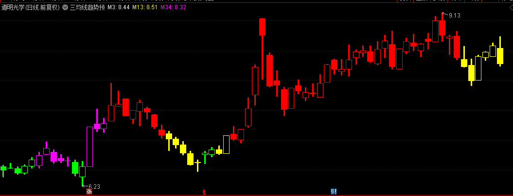 特殊情况下,当M3重新站上M13,而M34却意外反转下行,K线呈现洋红色,这往往预示着市场可能面临短期的回调风险。
