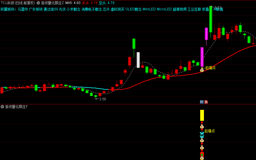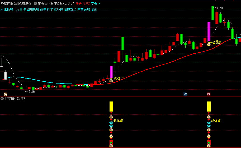此“起爆点”并非完全涨停后才出信号,出信号后,短线操作在白色虚线上持有;