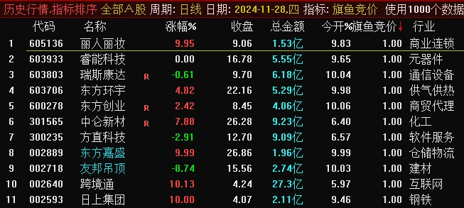 1、原版的旗鱼竞价指标不具备历史数据回测功能,但此升级版已增设该功能,让您能够回溯并分析过往数据。